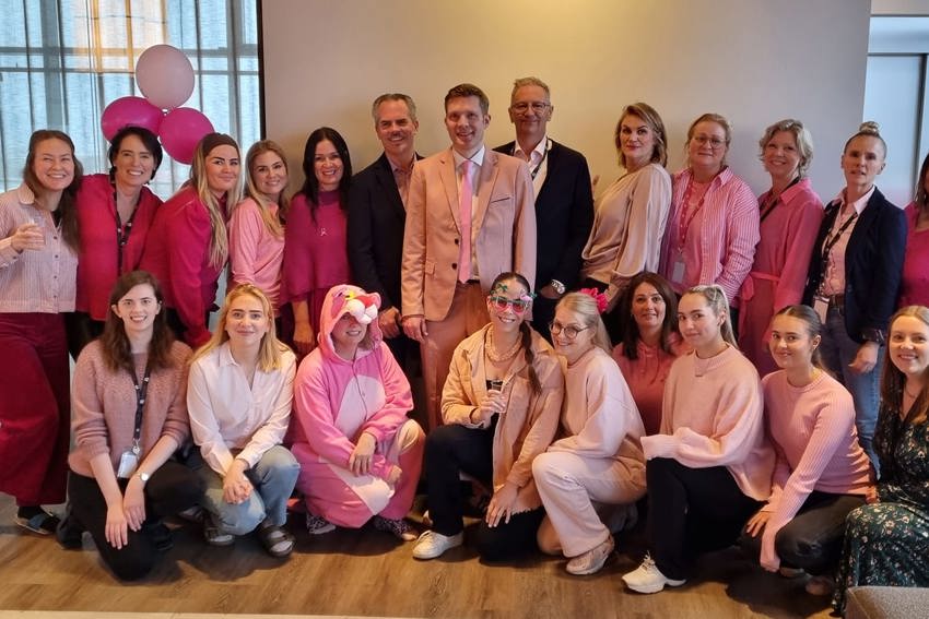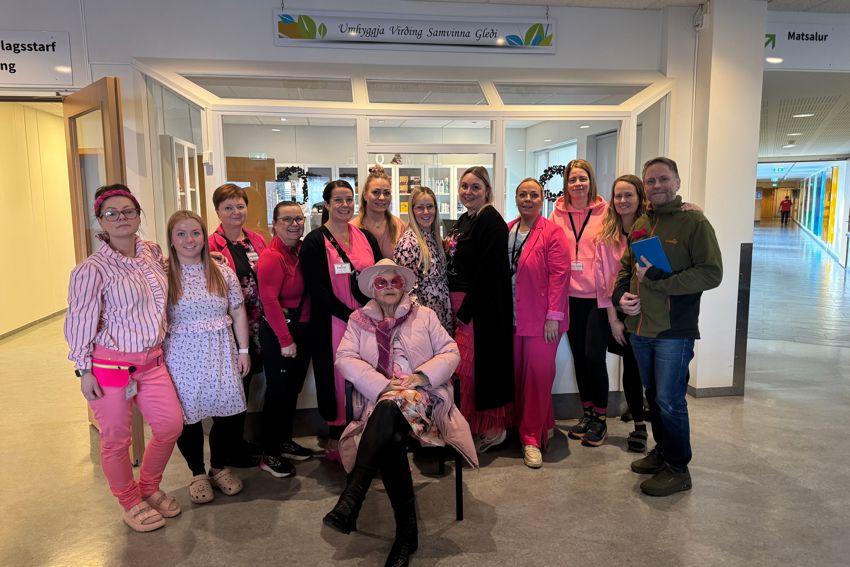 Starfsfólk Heilsuverndar samstæðu klæddist bleiku í tilefni Bleika dagsins í dag.