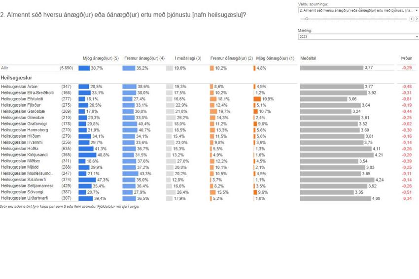 Það er áhugavert að rýna í tölur sem koma úr könnunum Maskínu. Sjúkratryggingar Íslands hafa kannað þjónustu stöðvanna og ánægju skjólstæðinga heilsugæslunnar á landsvísu núna undanfarin ár.
